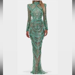 Albina Dyla Emerald Beaded Gown