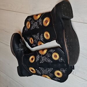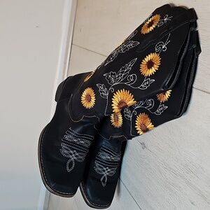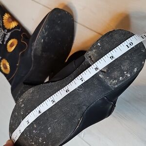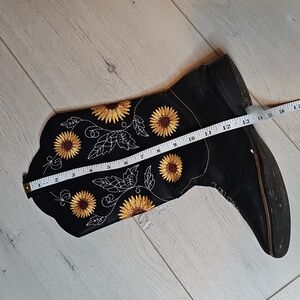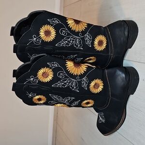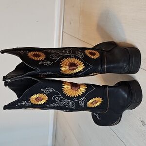 Sunflower Embroidered Cowboy Boots Black Faux Leather Size 40 (Runs Small)