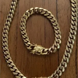 Elegant gold chain necklace and bracelet set, perfect for adding a touch of luxury to any outfit.