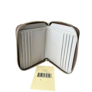 Comes with Small Matching Zip Around Wallet W-4.5” x H-4” x D-1” with Red Fabric Billfold Compartment, and 8 Leather Card Slots. Dust Bag Included in Sale.