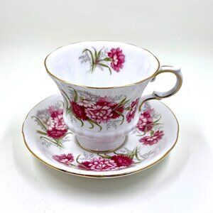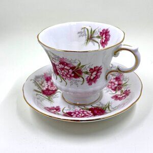 Vintage Paragon Teacup and Saucer, Flower Festival - K, Footed Tea Cup Set Carnation Flowers , Purple Pink Flowers, Vintage 1960s