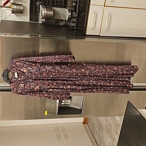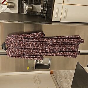 Elevate any wardrobe with thiis elegant maxi dress, which features a delicate floral print in deep aubergine tones, perfect for both casual and more formal occasions. The lightweight fabric and flowy design ensure comfort and ease of movement, while the long sleeves offer added versatility. Pair it with sandals for a daytime outing or dress it up with heels for an evening event.
