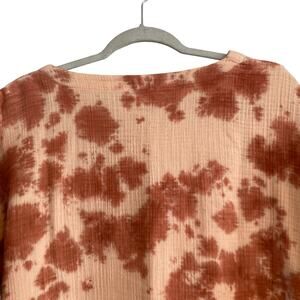 Womens Pure Jill Rust Peach Tie Dye Waffle Cotton Oversize Boho Top Size Small T