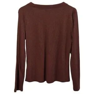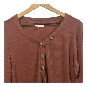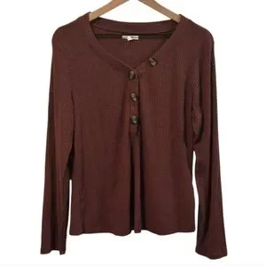 Maurices ribbed long sleeve Heartland henley tee in an earthy red color. V-neckline, button detail, and straight hemline. Size large.