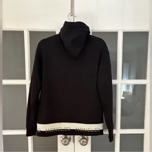 Chic black hoodie with white accents. Moncler logo on hem.