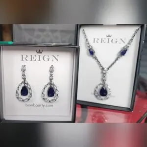 NWT! SET! BP Reign Villain Sapphire Blue and Silver Earrings and Necklace