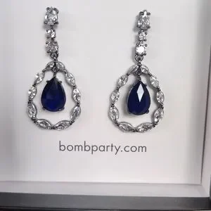 Stunning Reign earrings and necklace with deep blue stones and a silver finish. Perfect for elegance.