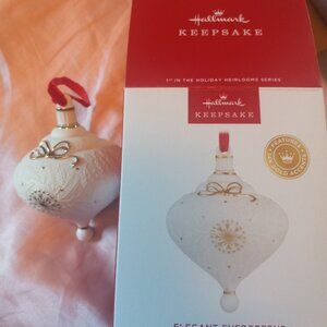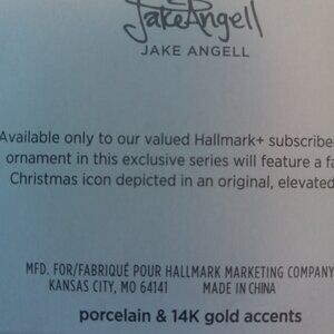 Not in stores or website but through Hallmark Subscribers, this gorgeous 14 Karat Gold and Porcelain ornament is perfect for your Christmas tree or as Christmas present!! In excellent condition, no scratches or marks!!