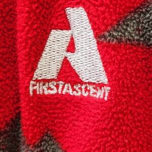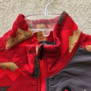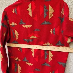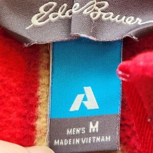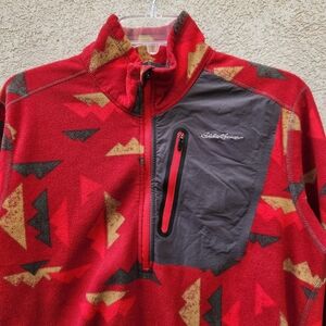 EDDIE BAUER Mens Pullover Medium Red Fleece Quarter Zip Geometric Pocket