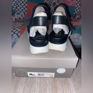 Chic & Sporty these black leather strappy sandals breeze you through your day looking great and feeling comfortable , with a wedge heal , cushioned footbed and adjustable stay put closure.