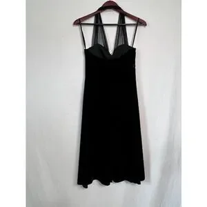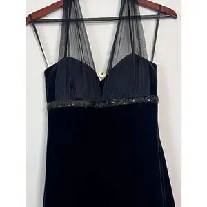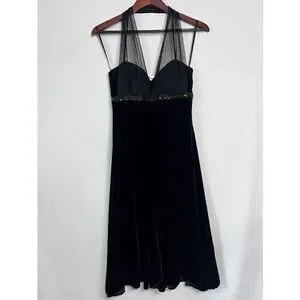 Y2K Vintage Black Stretch Velvet sequin Halter Top Dress Blondie Nites Size 9