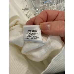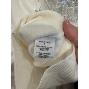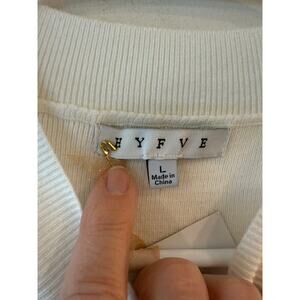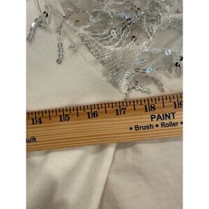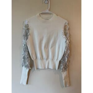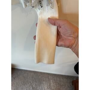 Hyfve Sweater Womens L Ivory Holiday Party Knit Sequin Fringe Sleeve Mock Neck