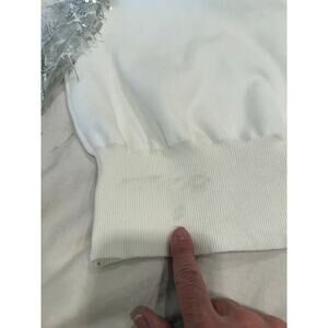 There is a mark on the back hem ribbing. It should come out when washing. I did not wash it because it is new with tags.