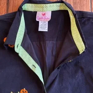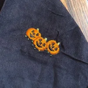 Vintage Quacker Factory Embroidered Pumpkin Halloween Button Up Corduroy Size XL