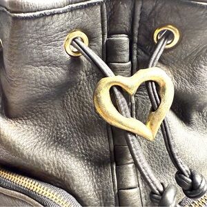 Discover the perfect blend of style and functionality with this chic black leather backpack. Featuring elegant gold accents, it's an ideal accessory for any occasion.