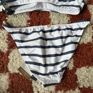 Brand new with tags! Tried on but never worn. Please note there is a very small ink dot on the bottoms, but likely treatable and hidden when worn. Top and bottoms are both size medium!