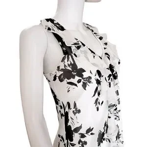 lovely monochrome sleeveless blouse with ruffle accent and lace back