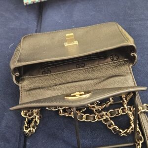 Elevate your style with the Tory Burch Black Leather Crossbody Bag. This chic accessory features a sleek design and a gold chain strap, perfect for any occasion.