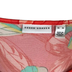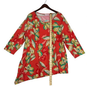 Susan Graver Blouse Womens Size XL Orange Tunic Top Asymmetrical Hem 3/4 Sleeve