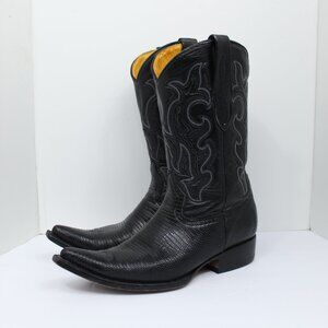 African Boots Co Only Leather Black Lizard Cowboy Western Boots Size 9 USA