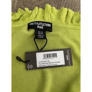 This is a Pretty Little Thing Green Frill Detail Asymmetric One Shoulder Top Plus Size 16.