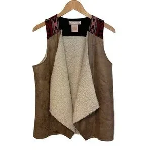 FLYING TOMATO Sherpa Lined Southwestern Open Vest Faux Suede Boho Women’s Medium