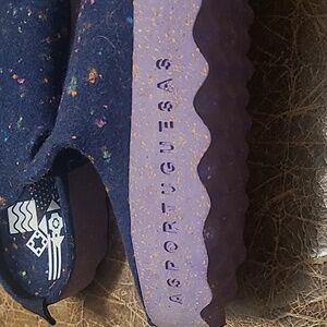 Pre-owned, like new. Asportuguesas by FLY London. Clogs. Navy Blue with purple soles. Size 42 EU.
