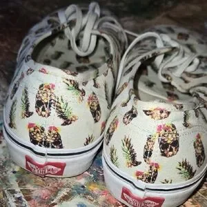 Stylish white sneakers featuring a playful pineapple print. Perfect for casual outings.