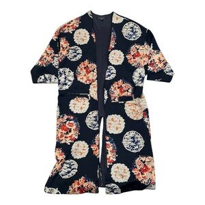 Zara TRF Outwear Navy Blue Floral Kimono Cardigan Jacket - Size S/M