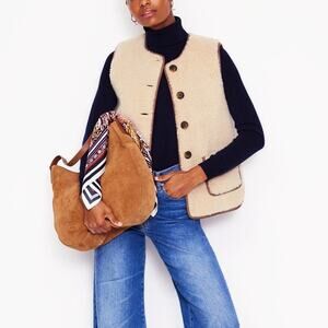 Boden Cream Faux Fur Clerkenwell Borg Button Gilet Vest Size 2