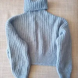 Cozy and stylish chunky knit turtleneck sweater from ZARA in a soft light blue color. Features an oversized fit with ribbed cuffs and hem. Warm and perfect for fall and winter layering.