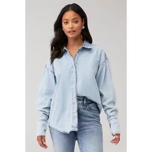 Add a touch of sparkle to your wardrobe with this Good American Rhinestone Denim Weekender Button Up Shirt!