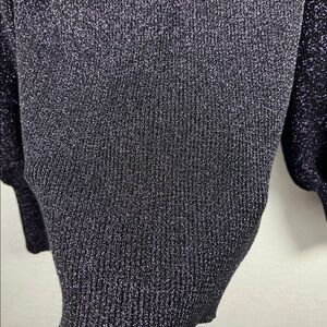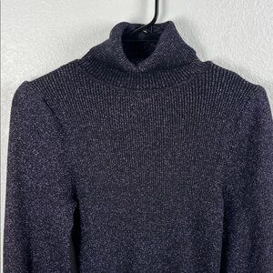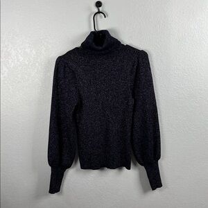 ANN TAYLOR Shimmer Puff Sleeve Turtleneck Sweater Black Purple Glitter Size M