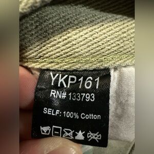 Chic wide-leg pants in olive green. Features a comfortable fit. Sage green jean material pockets on front and back. Zipper and button fly. New Without tags.