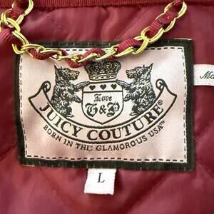 Juicy Couture Vintage Y2K Red Down Puffer Jacket Parka Coat Sz L Puffed Sleeve