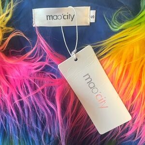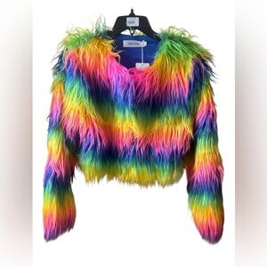 Rainbow Faux Fur Cropped Festival Rave Jacket NWT