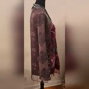Soft Surroundings Juliette Sweater Boho Fringe Wool Flowy Colorful Embroidered