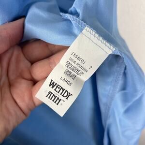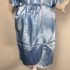Vintage Wendy Ann Blue Satin Lace Trim Robe Kimono Wrap Dress Loungewear Large