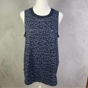 Athleta Zephyr Tank Shirt Womens Small Dark Blue Animal Print Sleeveless Active
