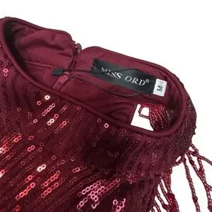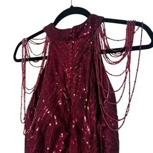 NWOT Miss Ord Burgundy Sequin Halter with Beads Floor Length Dress Size Medium
