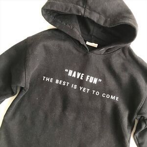Zara black “HAVE FUN” hooded sweatshirt EUC 6Y