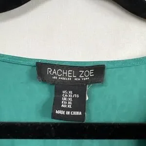 Rachel Zoe Blouse Womens XL Crop Top Green Long Sleeve Animal Print Holiday