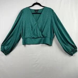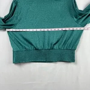 Item:Rachel Zoe Blouse Womens XL Crop Top Green Long Sleeve Animal Print Holiday