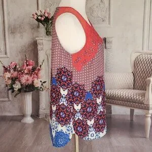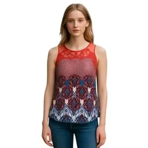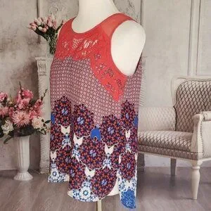 Daniel Rainn Lace Floral Jewel Neck Sleeveless Button Back Blouse Top Size PM