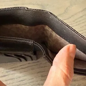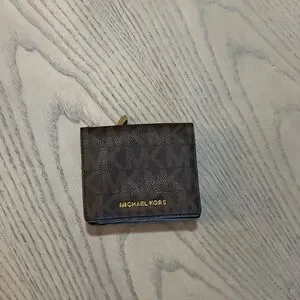 Add timeless style to your accessories with this authentic Michael Kors wallet featuring the iconic monogram design in rich brown and tan tones. Designed for both fashion and function, this wallet offers a sleek, compact silhouette that fits easily in your handbag or can be carried solo.