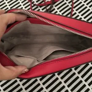 Chic and compact design. Bold red color and beautiful Saffiano leather. Ideal for daily use. Features adjustable strap and secure zip closure. Crossbody with no callouts and it excellent condition.