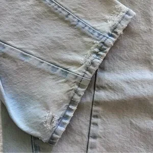 • Details: Drawstring waist, wide leg, raw hem, light distressing