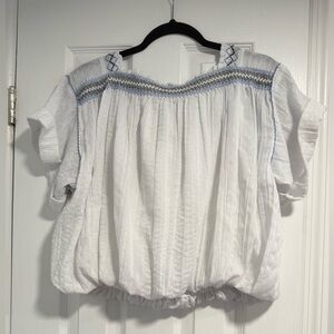 Elegant white blouse with delicate blue accents. Perfect for casual outings.offers are welcome