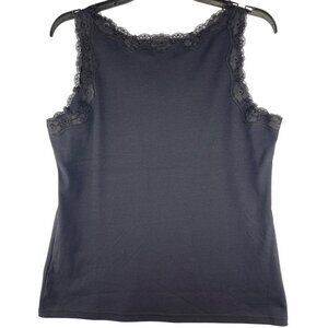 Style & Co. Womens Small Scallop Lace Trim Tank Top Deep Black