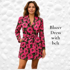 This is a beautiful item.  Turn heads with this striking fitted blazer dress from ZARA. Featuring a bold pink floral print with lush green accents, this piece radiates elegance and confidence.